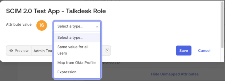 | Variable name | talkdeskExternalId (externalId is a reserved variable name on Okta) |