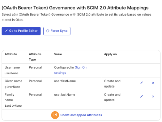 Go to the Provisioning tab, scroll down, and click on Show Unmapped Attributes [14].