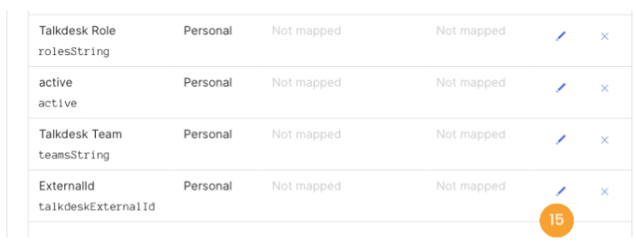 To configure each attribute mapping, click the corresponding pencil icon [15].